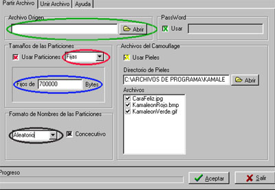 Una vez que hemos partido o no los archivos podemos optar o no por kamaleonarlos teniendo además la opción de fijar una contraseña.